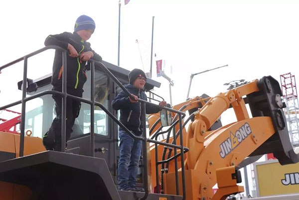今天,晋工馆迎来了大批可爱的孩子们,孩子看到真实的工程机械大家伙,惊呼着表达惊奇和快乐,让热闹的展会更添童真的欢乐!