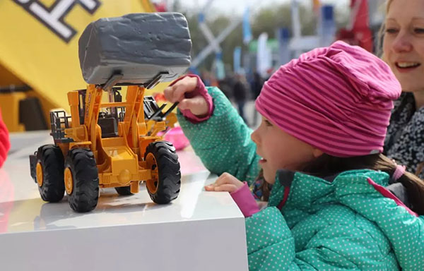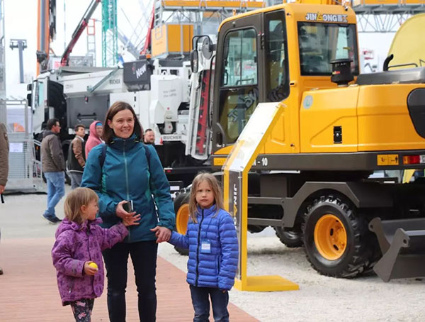 Bauma2019,德国当地时间4月13日,是宝马展的公众开放日,也是观众们的周末轻松日。今天,宝马展现场堪称”工程机械主题儿童乐园“,家长们带着孩子来到现场,近距离观摩工程机械设备,共度欢乐时刻。